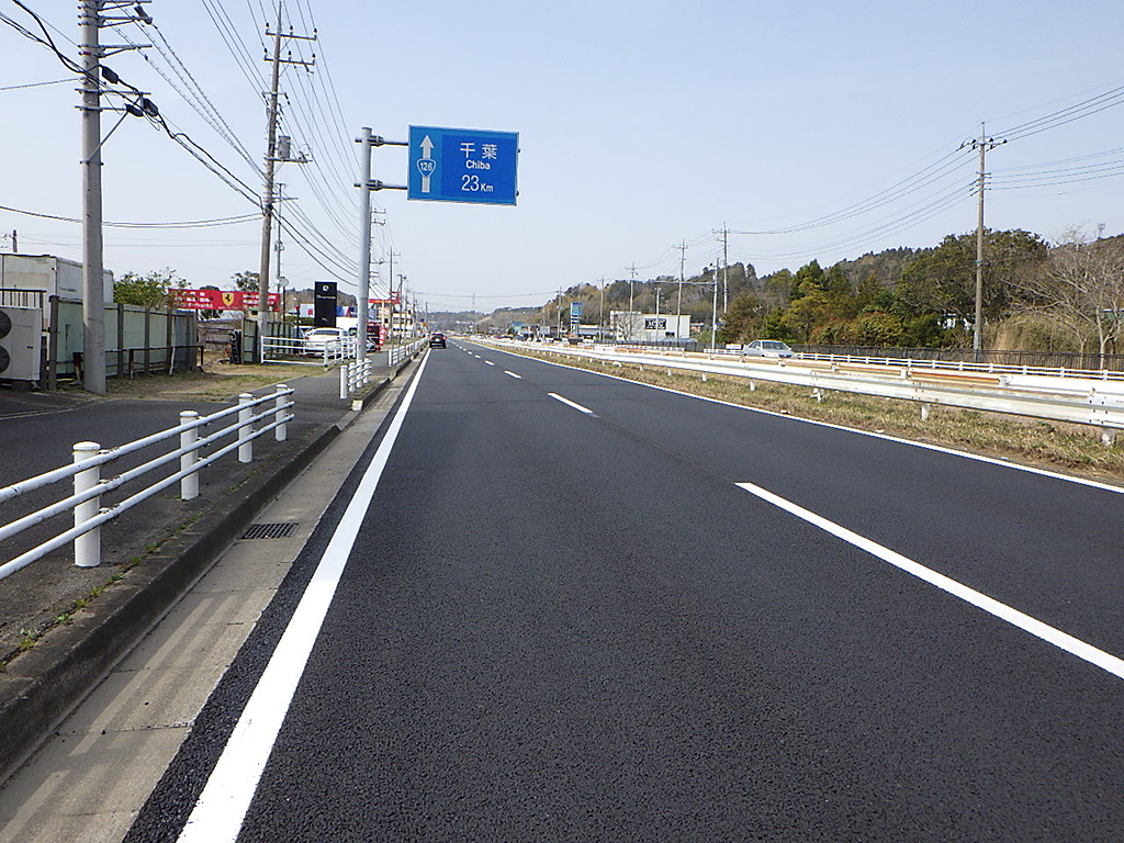 本工事は、千葉市街から銚子を繋ぐ国道126号で、東金市内を通る片側2車線道路で行われました。