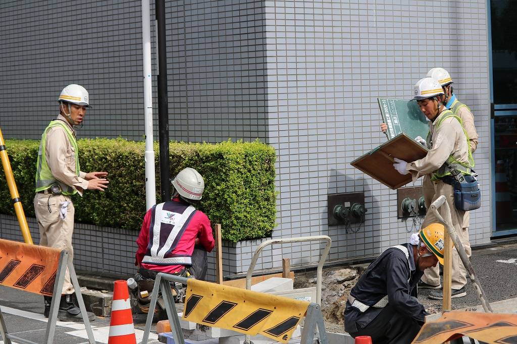 施工途中の交通規制の様子