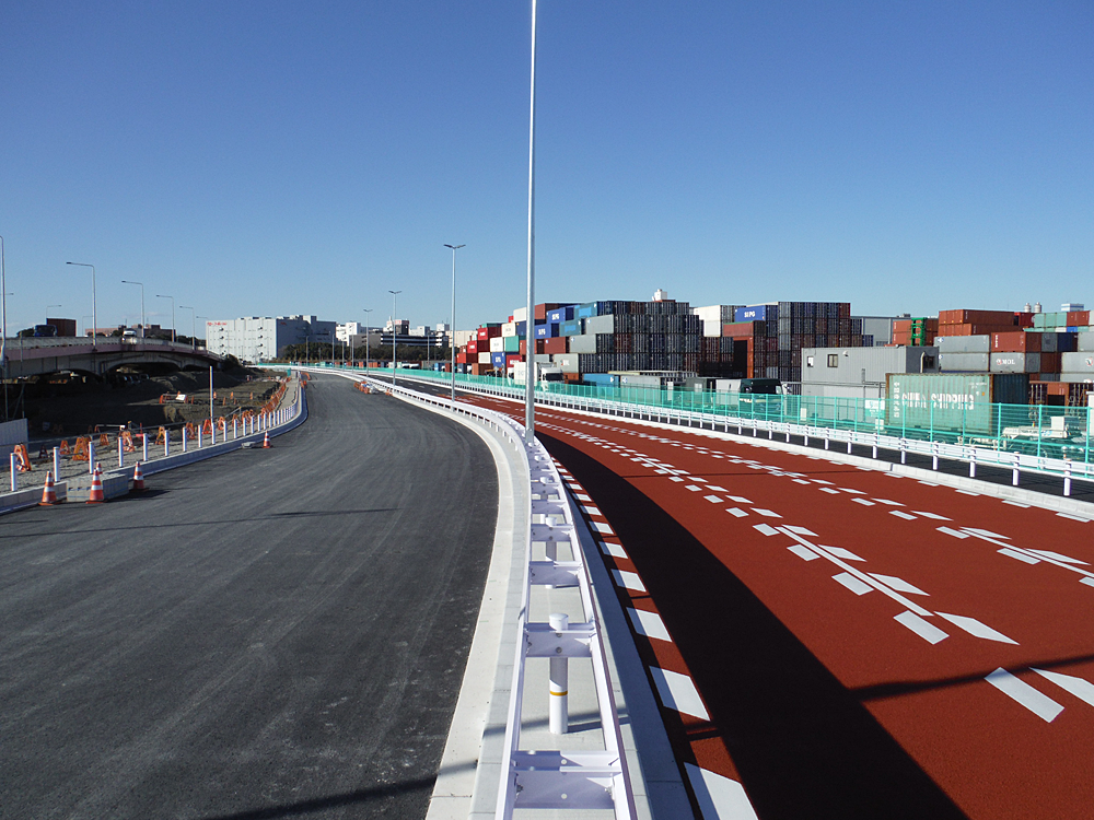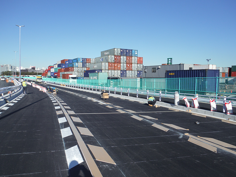 本工事は既設の城南島野鳥橋を落橋し、新たに平面化道路を整備するために、施工期間中、道路利用者に対して現道と同様の通行空間を確保するための仮設切廻し道路を整備する工事でした。