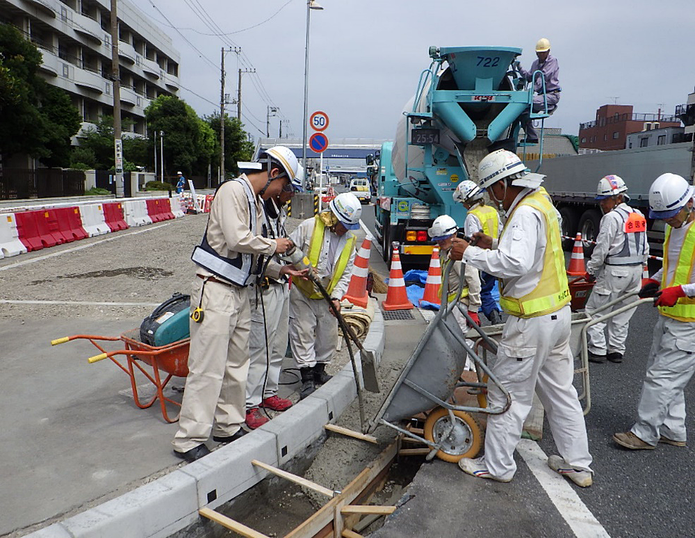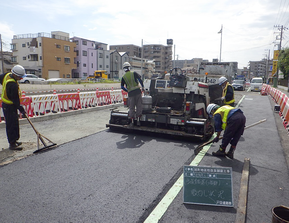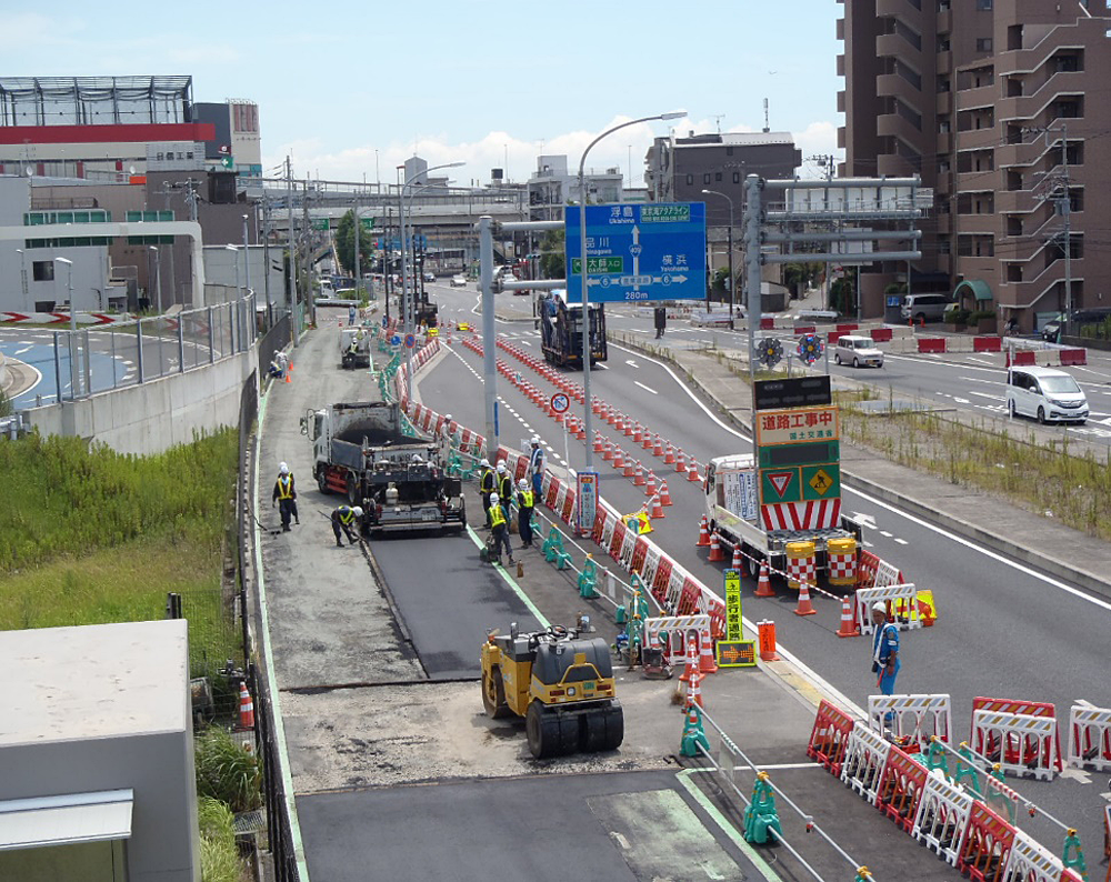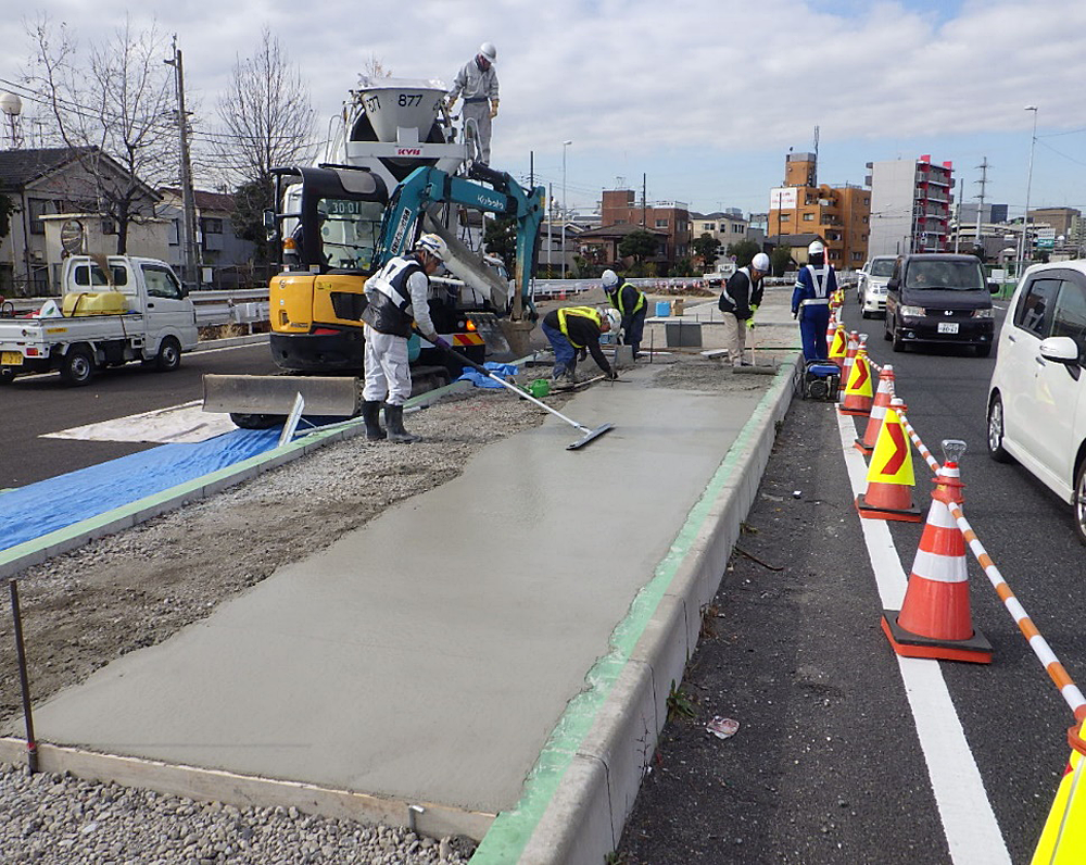 本工事は、国道409号の富士見町〜殿町の区間で3地区に分かれた工事です。1地区では車道の現道を計画位置へ切替える工事で、残りの2地区は歩道の拡幅工事となっています。車線規制を行い、歩道を切廻しながらの工事だったため、一般車両への配慮や歩行者の安全通路を確保しながら施工を進めていく必要がある工事でした。