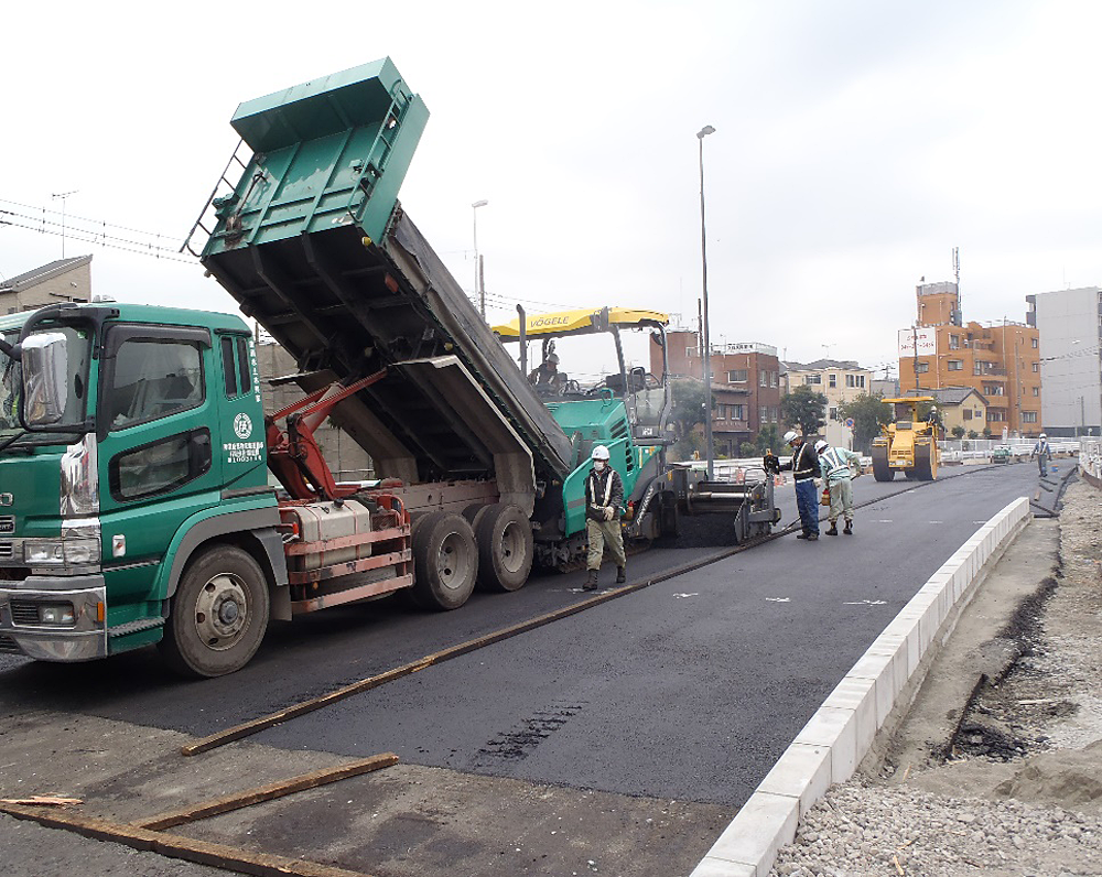 電線共同溝設置工事に伴う道路復旧工事(28五-1)及び路面補修工事(28五の7・遮熱性舗装)