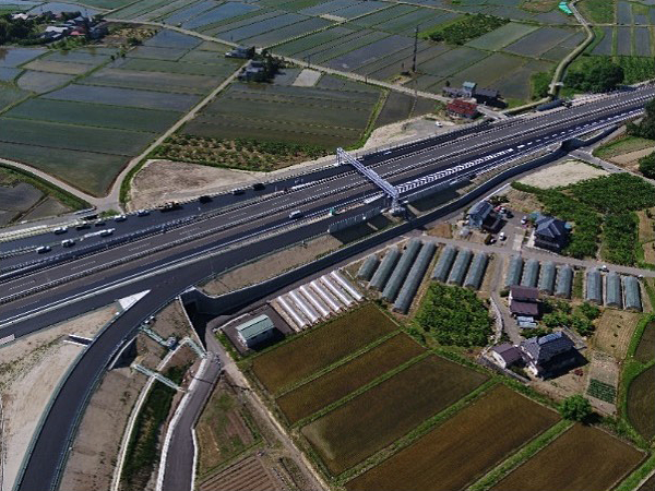 本工事は、東北道と東北中央道との新設ジャンクションの土工事です、施工は戸田建設より請負、仮設工・用排水工・擁壁工(多数アンカー補強土壁)等の施工を行いました。