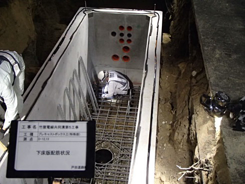 本工事は、一般国道2号の電線共同溝工事でした。工事延長L=164m、管路部の標準本数35本、特殊部沈埋工法3基、開削工法2基、現場打部2基という内容です。電線共同溝の影響部で、縁石工、排水構造物工、舗装工、区画線工の復旧も付属する施工でした。