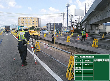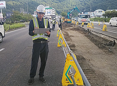 現在、福島県福島市の国道13号で行われている舗装改良工事の現場代理人という立場で仕事をしています。