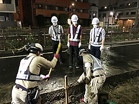 大学3年生を対象に、東尾久舗装工事作業所で「1日仕事体験:夜勤編」を実施しました。