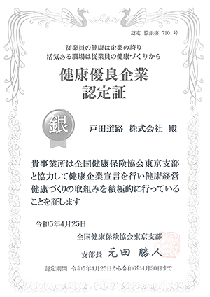 健康優良企業「銀の認定」を取得しました