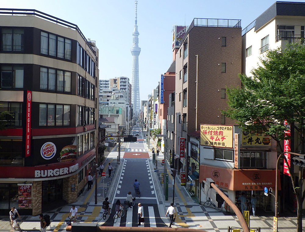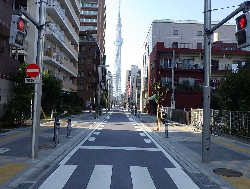 国内外から多くの人が訪れる観光スポットとなった周辺エリアでは、東京スカイツリーの建設に伴って、主要道路を「まち歩き観光を楽しめる回遊ルート」として整備する取り組みがスタートしました。墨田区や公益財団法人東京都道路整備保全公社を中心に「新タワー周辺主要道路景観整備事業」が策定され、桜橋通り・言問通り・タワービュー通りの3路線で、整備事業が進められたのです。具体的には、交通量の増加に対応するため、電線類の地中化や歩道の拡幅などを推し進め、訪れる人たちだけでなく地域の住民のみなさんに、安全で快適な歩行者空間を確保・提供するためです。