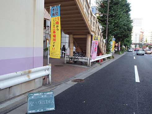 他にも、パーキングメーター対策として、工事開始ののぼり旗を設置。長距離深夜バス対策として、施工の分割数を増やし運行が終わる時間帯での施工など、これまでの難所施工の経験値を存分に活かしながら臨んでいます。