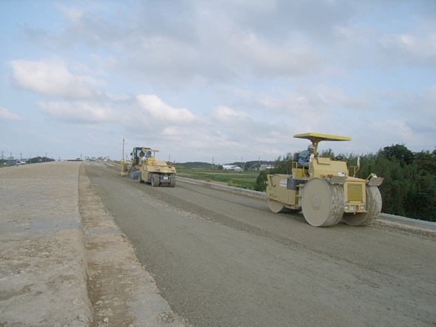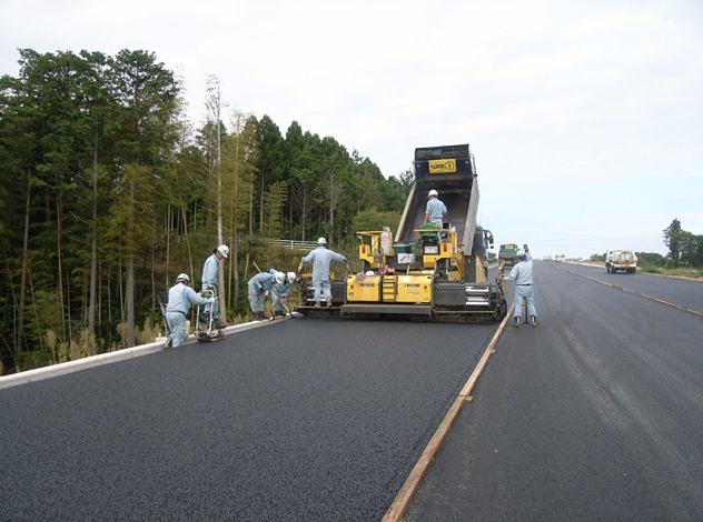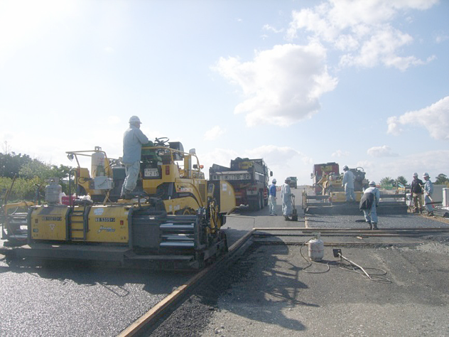さらに、舗装部に必要なアスファルト混合物の供給体制を整えることも不可欠でした。施工最盛期には1日50~60台ペースで資材を運ばねばならず、プラントの生産体制とダンプトラックによる輸送体制の確保が、喫緊の課題となっていたからです。