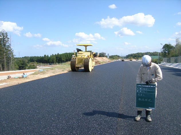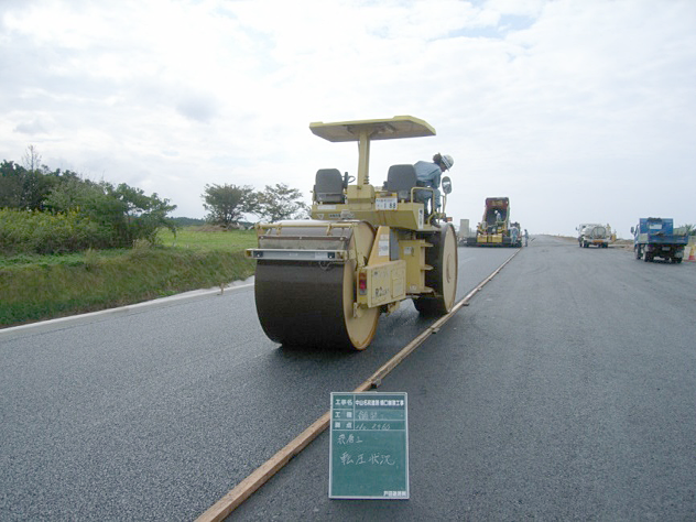 本工事は、2013年当時の普及状況などを踏まえ、「トータルステーション(TS)による出来形管理技術(土工)」について一般化し、使用原則化することでICT施工技術の定着を図る、国土交通省主導の取り組みにより発注されたもの。戸田道路でも、当時の先端領域であった「TSを用いた出来形管理技術」を軸に「MC(マシンコントロール)技術」で道路づくりに挑戦する絶好の機会と捉え、高規格道路の新説となる中山名和道路の樋口エリアにおける舗装工事に臨みました。