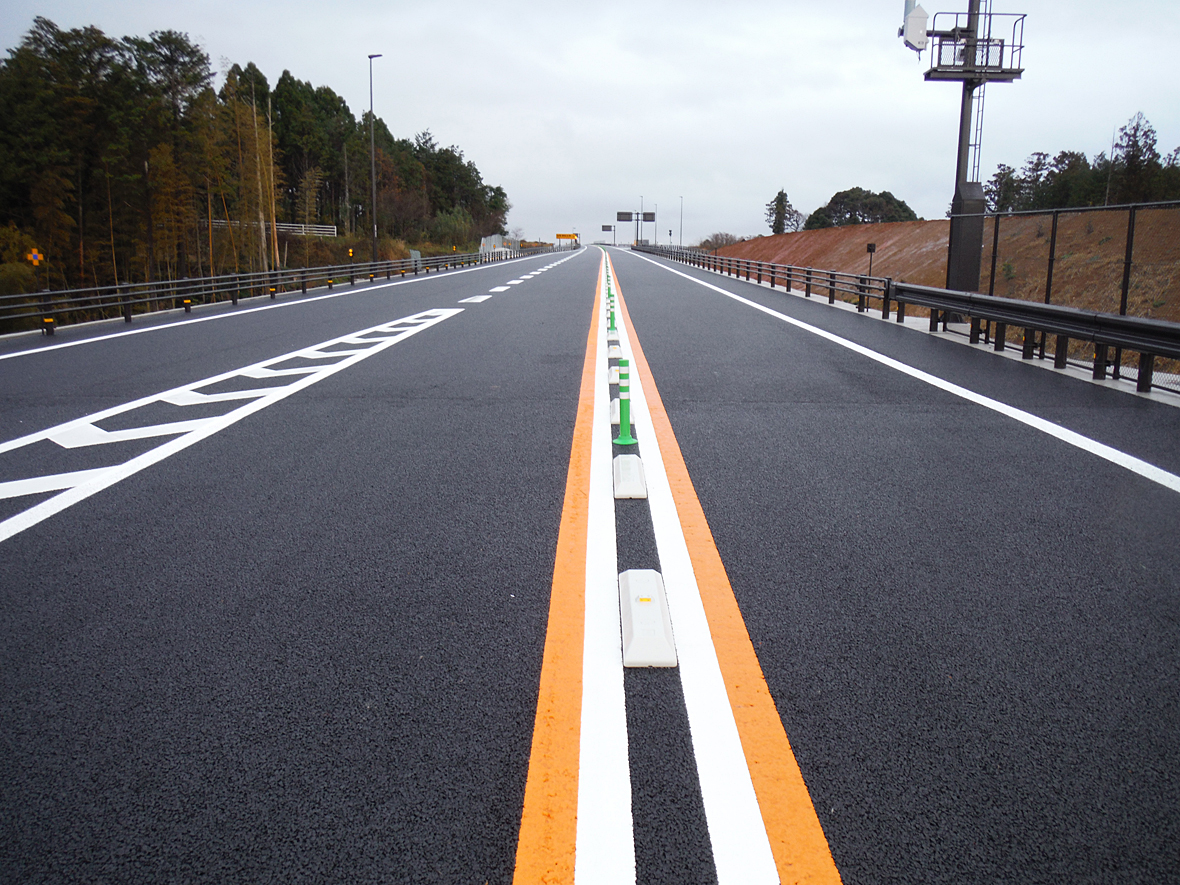 本工事は、2013年当時の普及状況などを踏まえ、「トータルステーション(TS)による出来形管理技術(土工)」について一般化し、使用原則化することでICT施工技術の定着を図る、国土交通省主導の取り組みにより発注されたもの。戸田道路でも、当時の先端領域であった「TSを用いた出来形管理技術」を軸に「MC(マシンコントロール)技術」で道路づくりに挑戦する絶好の機会と捉え、高規格道路の新説となる中山名和道路の樋口エリアにおける舗装工事に臨みました。