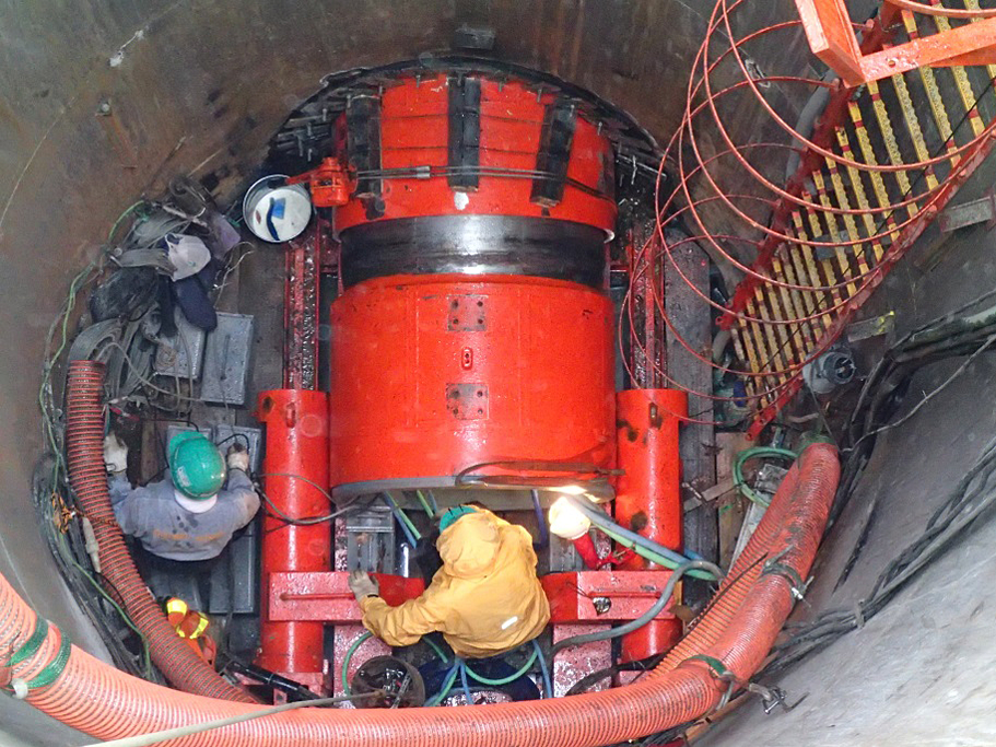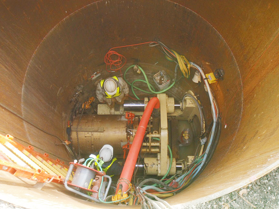 発信立坑より泥濃式曲線掘進機を油圧ジャッキにて推進