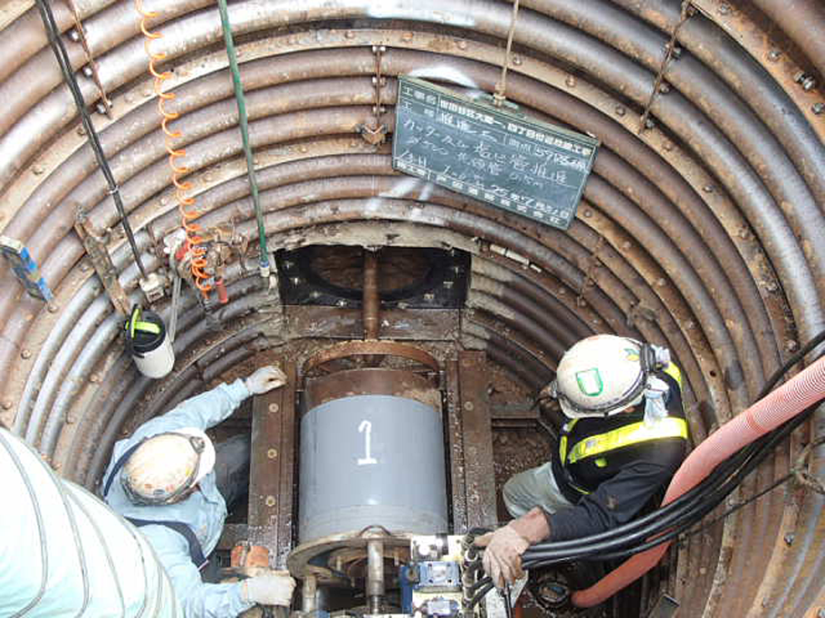 加えて、あらゆる管種・管径、そして軟弱質・粘精度・砂礫土・硬質土などの土質に対応する柔軟さも併せ持ち、戸田道路では特に呼び径250〜700の小口径※で、交通量の多い道路や市街地、線路などを横断する開削困難なエリアなど、数多くの実績を積み重ねています。
